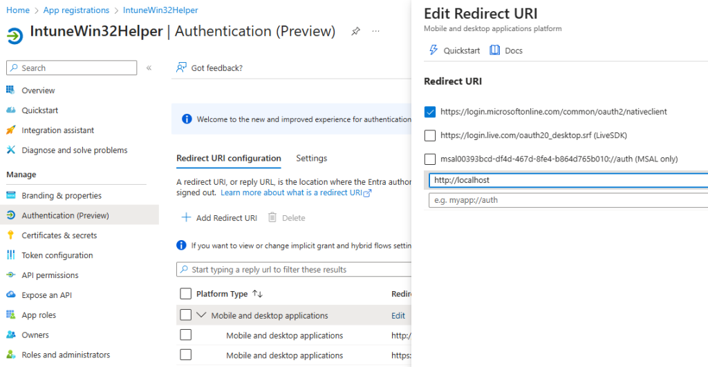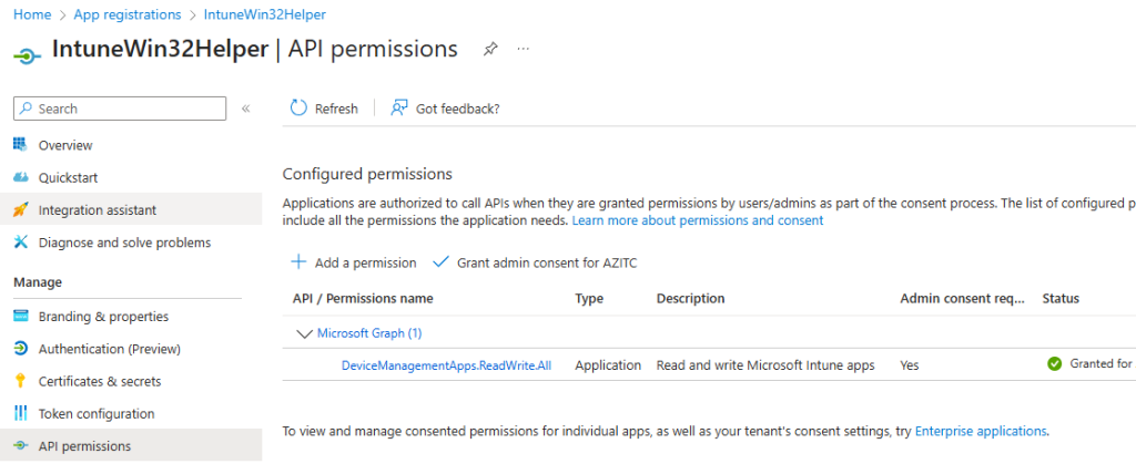 - Im Ziel-Tenant eine App Registration erstellen, z.B. namens „IntuneWin32Helper“