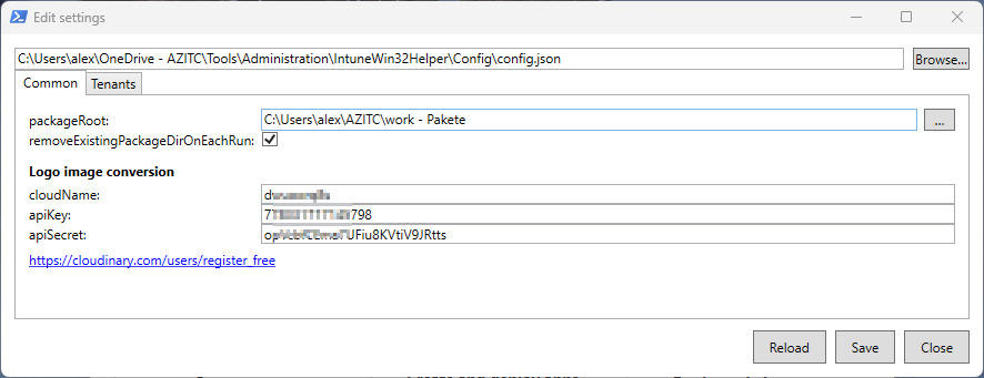 Wie ihr später sehen werdet, kann das Tool App Logos aus dem Web herunterladen und diese in Intune einbinden, sodass z.B. im Company Portal ein hübsches Logo angezeigt wird. Falls die Logos nicht als .png oder .jpg vorliegen, sind sie für das Tool leider nicht verwendbar. Deshalb habe ich kurzerhand einen Clouddienst „eingebaut“, der eine etwaige Konvertierung on-the-fly übernehmen kann. Ich habe mich für Cloudinary entschieden, da er im Basis level kostenlos ist – und mir reicht das so.
