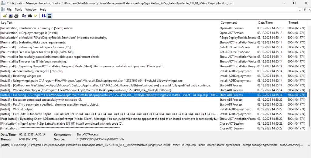 Übrigens: Alle PSADT Logs liegen im IntuneManagementExtension Ordner:
